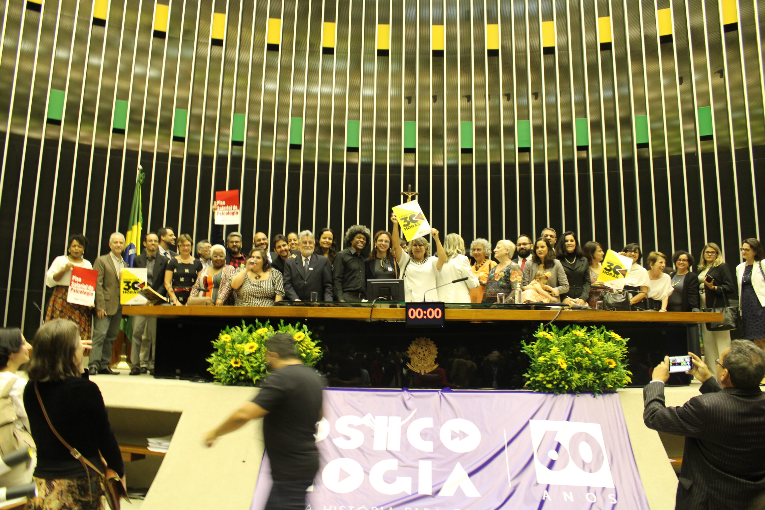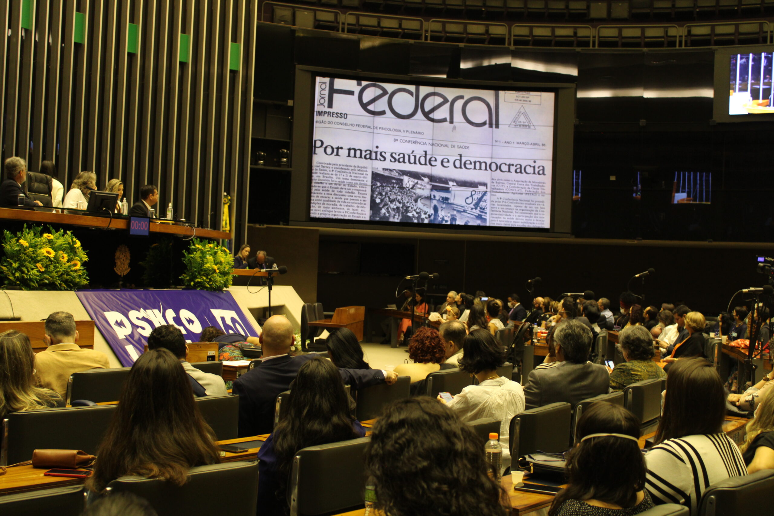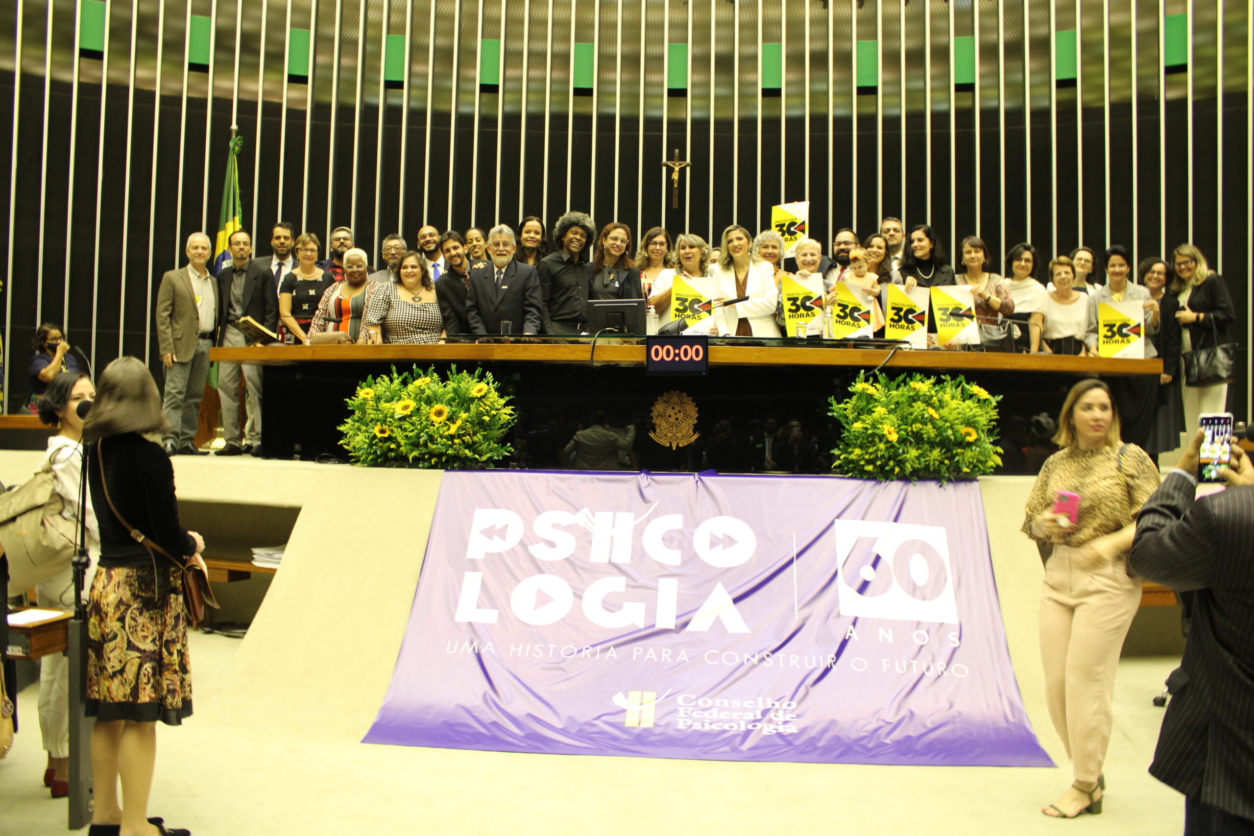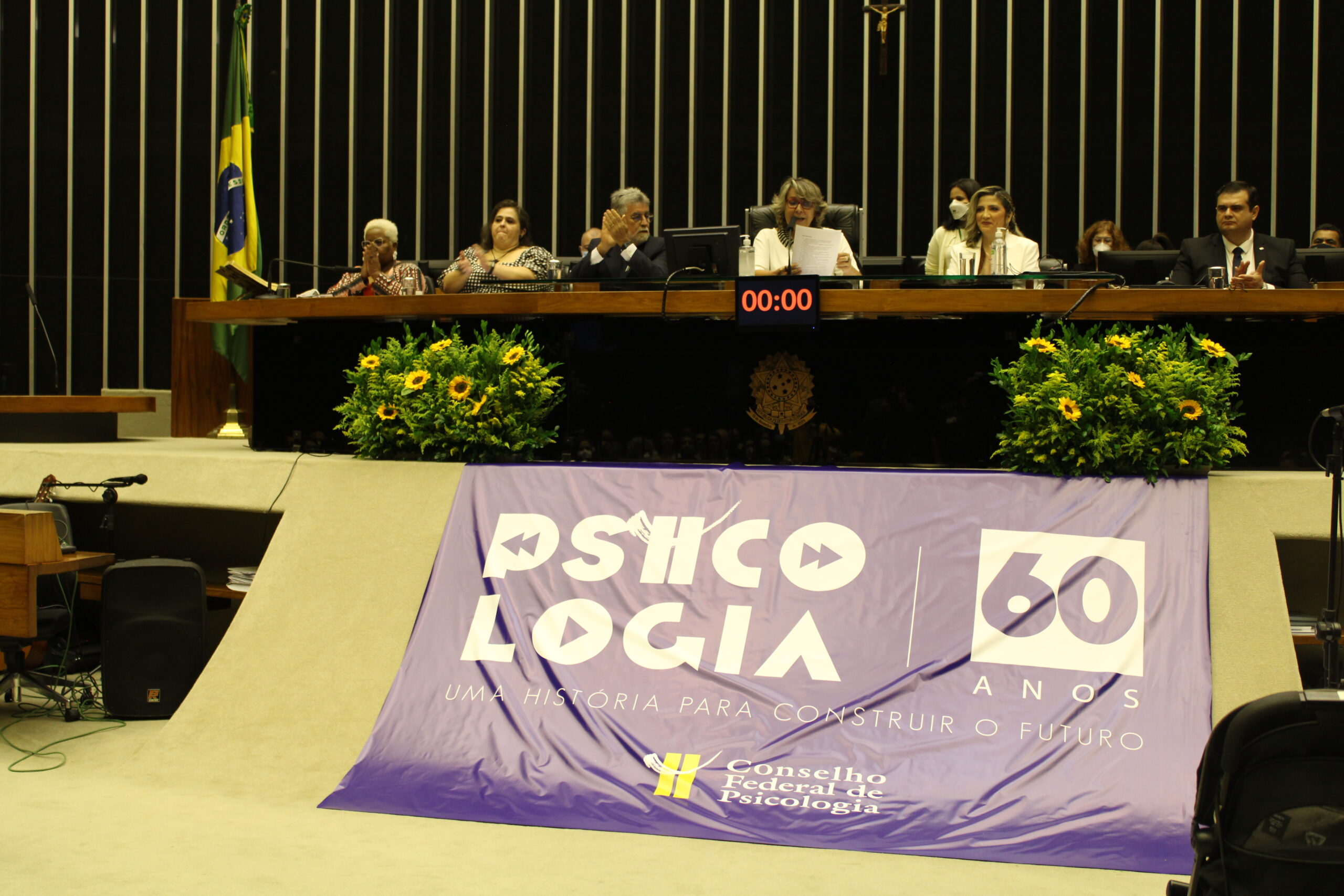 A Câmara dos Deputados celebrou, na sexta-feira (13), os 60 anos da regulamentação da Psicologia no país. A comemoração foi realizada em Sessão Solene que contou com a presença de parlamentares e de representantes do Sistema Conselhos de Psicologia de todo o Brasil, além de centenas de profissionais e estudantes da área. A solenidade foi proposta pela deputada federal Erika Kokay (PT-DF), psicóloga de formação.
